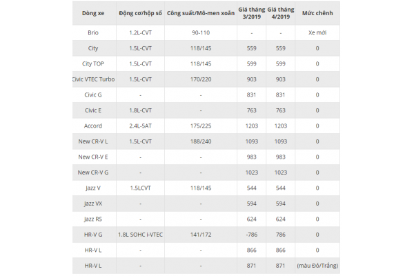 Honda Ôtô Đồng Tháp – Cao Lãnh xin báo giá xe Ôtô Honda tháng 4/2019, mọi sự chú ý đang