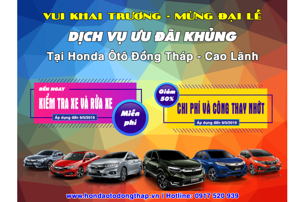 Honda Ôtô Đồng Tháp – Cao Lãnh xin thông báo đến quý khách hàng chương trình “VUI KHAI TRƯƠNG – MỪNG